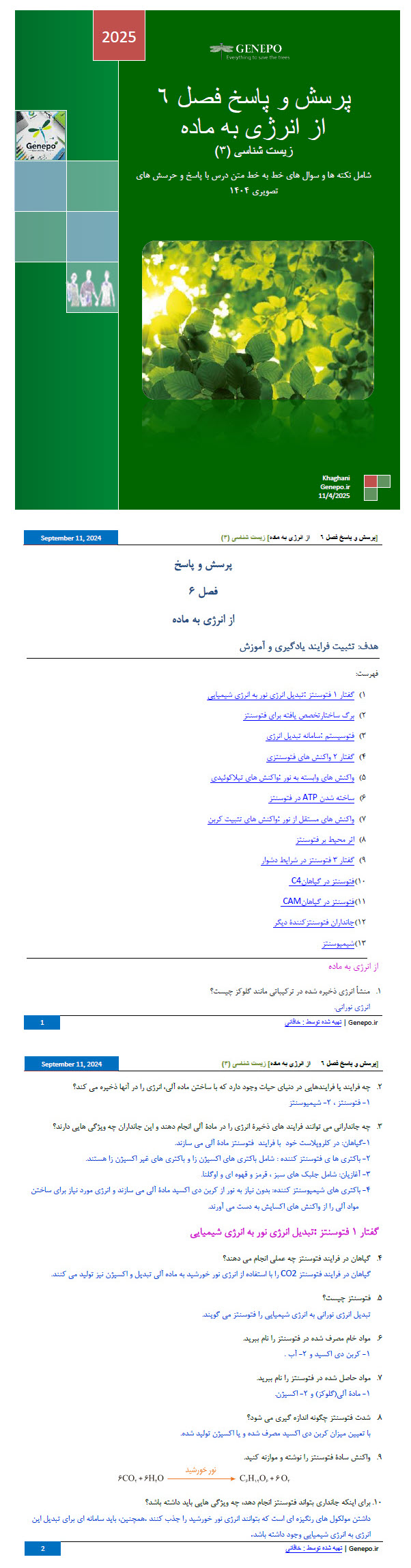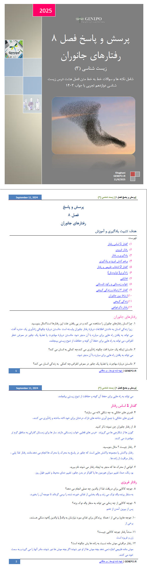پرسش و پاسخ زیست 3 ویرایش سال 1404